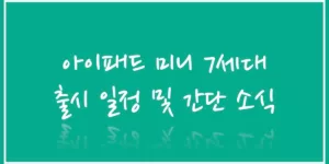아이패드 미니 7세대 출시 일정 및 간단한 소식 정리를 하려 합니다. 아이패드 미니는 독보적인 폼펙터로 많은 분들께 사랑을 받고 있습니다. 아이패드 에어를 사용 중인 저 또한 미니를 추가 구매하고 싶을 정도로 이동성과 활용성이 매우 뛰어난 기기입니다.